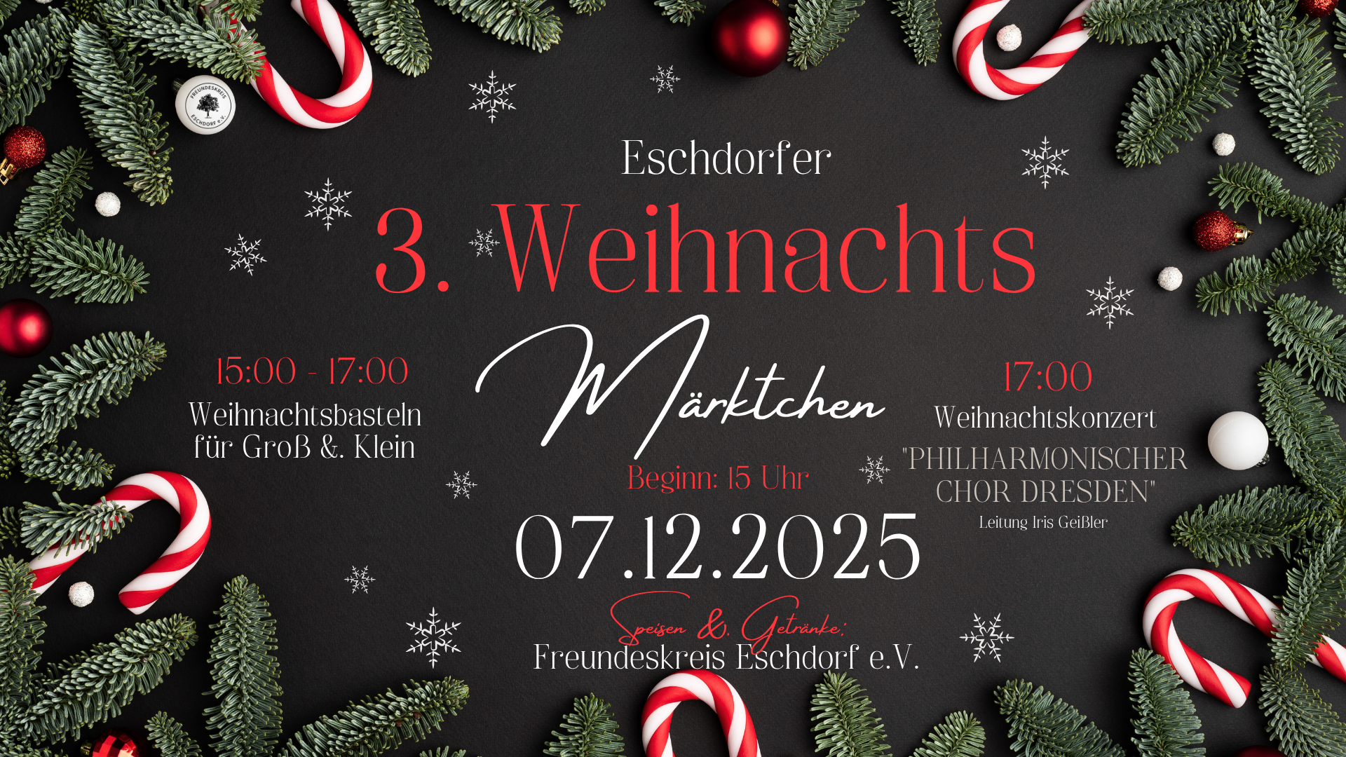 Für Euer leibliches Wohl sorgen Bratwurst, Glühwein und weitere Leckereien, die wieder vom Freundeskreis Eschdorf e.V. bereitgestellt werden. Kommt vorbei, lasst euch von der weihnachtlichen Atmosphäre verzaubern und stimmt euch auf die schönste Zeit des Jahres ein!