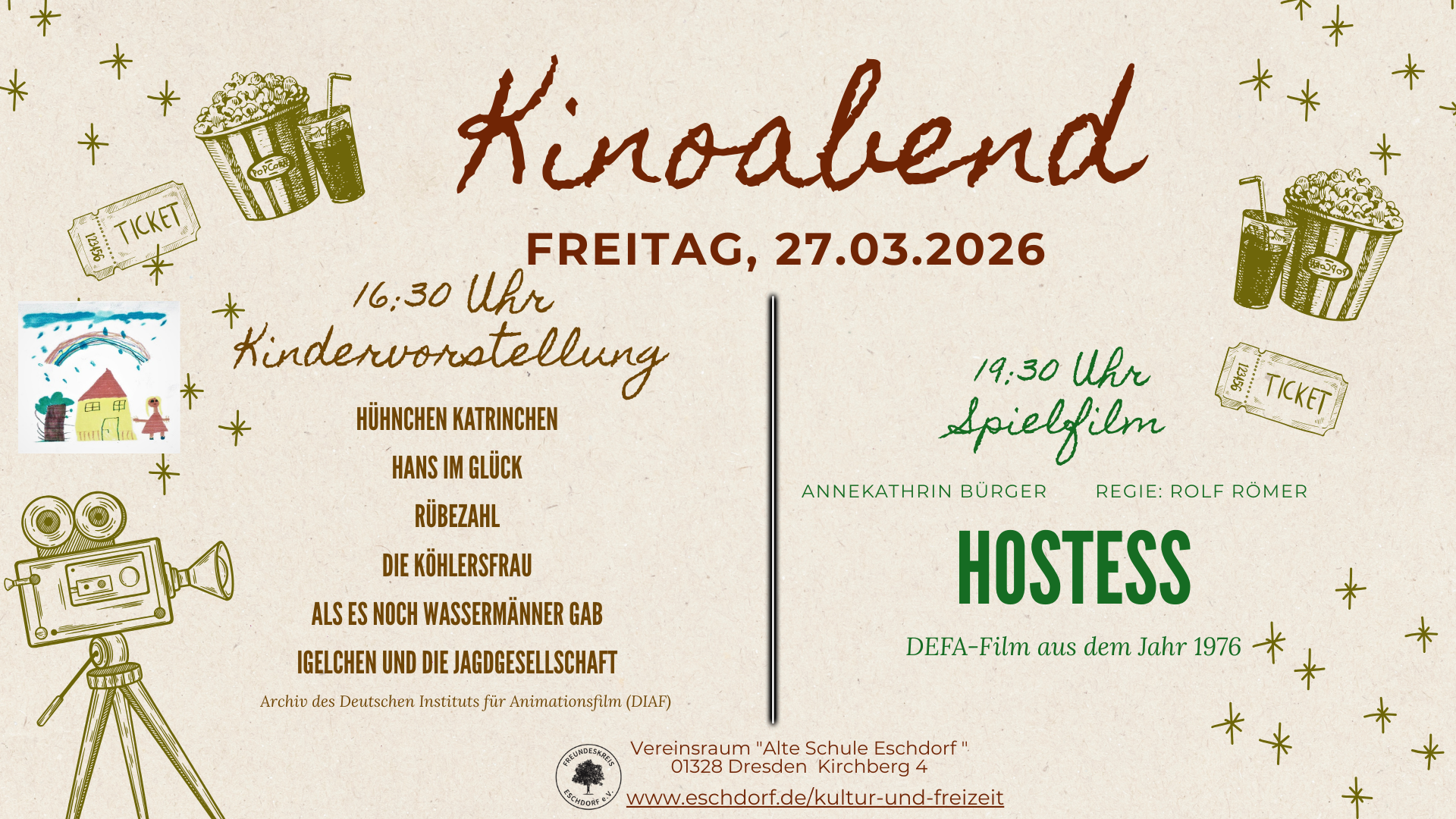 Für unser Filmprogramm um 19:30 Uhr wurde von unserem Publikum der DEFA-Film „Hostess“ gewählt. „Hostess“ ist ein Liebesfilm mit Annekatrin Bürger und die letzte Regiearbeit von Rolf Römer, der auch im Film spielt. Die Premiere war am 12. Februar 1976 im Berliner „Kosmos“. Der Film fand bei der Kritik wenig Beachtung, erfreute sich jedoch großer Beliebtheit beim Publikum. Werke von Franz Bartzsch, Rainer Böhm, Günther Fischer und Wolfgang Amadeus Mozart sind zu hören. Einige Titel werden von Veronika Fischer und Nina Hagen gesungen.